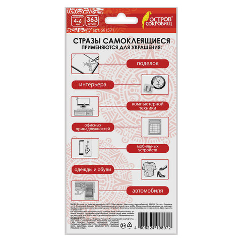 С помощью самоклеящихся страз ОСТРОВ СОКРОВИЩ можно декорировать поделки и аппликации, детали интерьера, одежду и гаджеты, реализовать самые смелые творческие идеи.