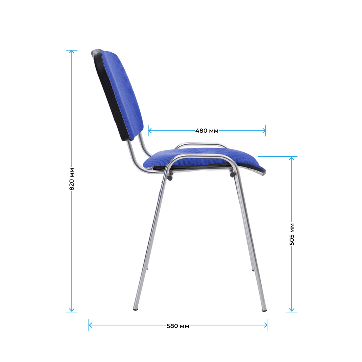 Стул для посетителей Helmi HL-F01 «Изо» – одна из наиболее востребованных моделей стула для посетителей. Цвет обивки из ткани – синий/чёрный. <br/>Набивка – высокоупругий поролон. Каркас – устойчивая металлическая конструкция. Ножки и дуги – плоскоовальная труба сечением 30х15 мм и толщиной стенок – 1,2 мм. Покрытие рамы – хром и обладает высокой твердостью и износостойкостью, защищает поверхность металла от коррозии, что способствует увеличению срока службы в несколько раз. На ножках есть пластиковые заглушки. Спинка сзади и сиденье снизу закрыты пластиковыми чехлами. Он подходит не только для офисных помещений, но и для заведений общественного питания, гостиниц, конференц-залов или как компьютерный стул для дома. Конструкция каркаса позволяет убирать стулья в стопки для экономии пространства.<br/>• Высота, мм: 810;<br/>• Глубина, мм: 580;<br/>• Ширина, мм: 530;<br/>• Ширина сиденья, мм: 480;<br/>• Глубина сиденья, мм: 410;<br/>• Высота до сиденья, мм: 475;<br/>• Высота спинки, мм: 315;<br/>• Материал обивки: ткань;<br/>• Материал рамы: хромированный металл;<br/>• Цвет: красный/чёрный.