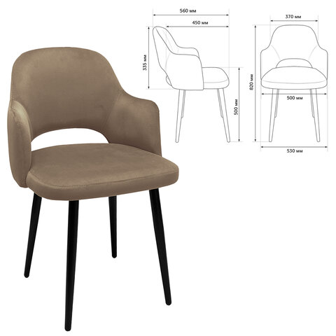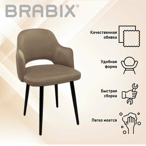 Стул BRABIX "Comodo CF-075", велюр бежевый, каркас металлический усиленный черный, 532775