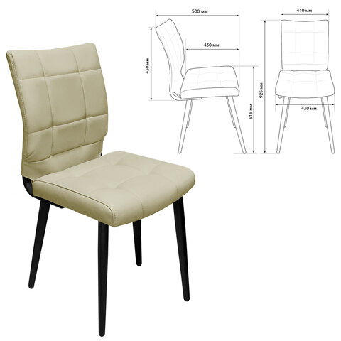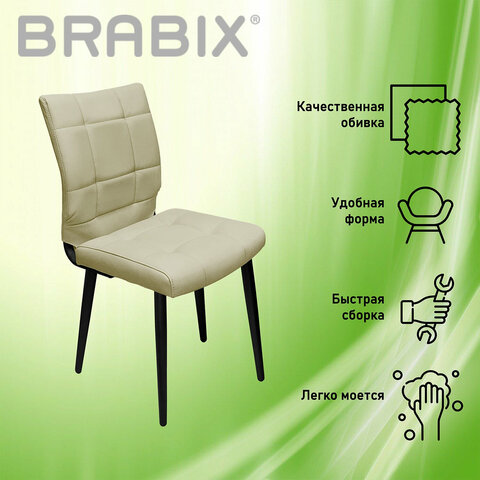 Стул BRABIX "Rombo CF-077", велюр бежевый, каркас металлический усиленный черный, 532777