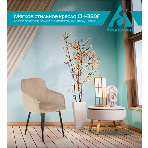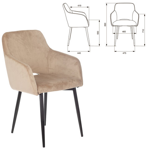 Стул BRABIX "Comodo CF-075", велюр бежевый, каркас металлический усиленный черный, 532775