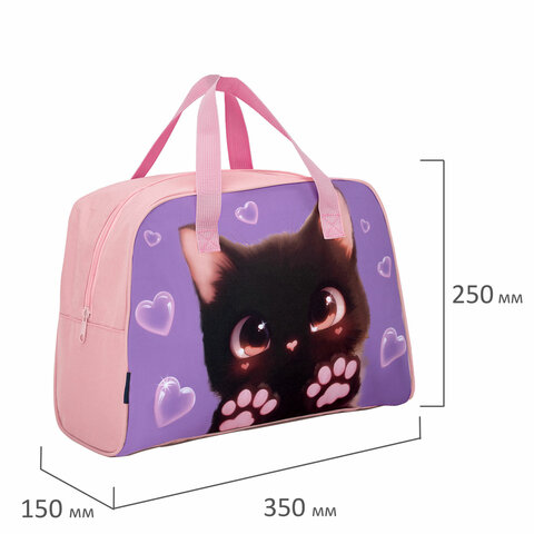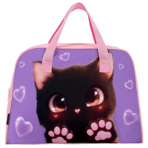 Сумка для занятий с плечевым ремнем, подкладкой BRAUBERG KIDS с ручками, 35x25x15см, Curious cat, 273291