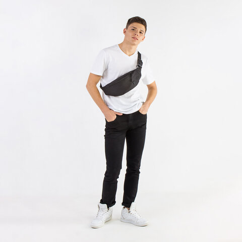 Лаконичная модель универсального черного цвета с двумя отделениями имеет довольно вместительный объем. Надежная застежка - фастекс - позволяет с легкостью зафиксировать сумку на поясе или плече.