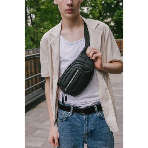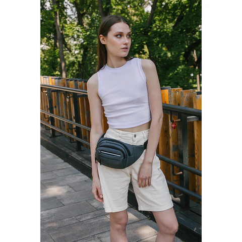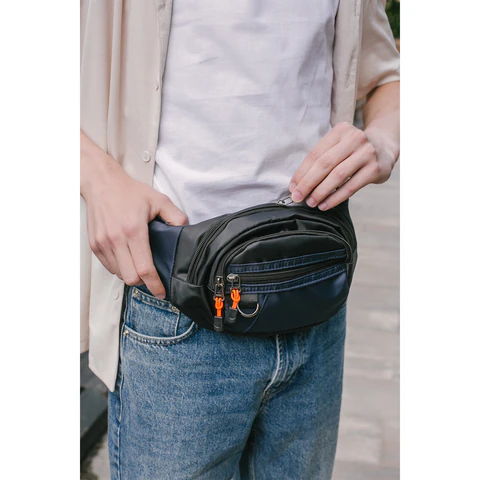 Сумка на пояс BRAUBERG RIO, два отделения, регулируемый ремень, черная, 38х12х8 см, 270822