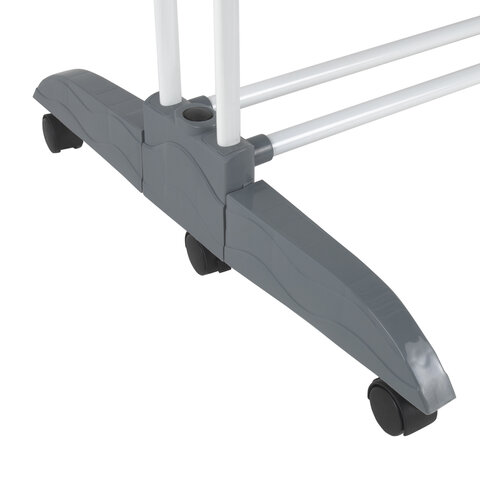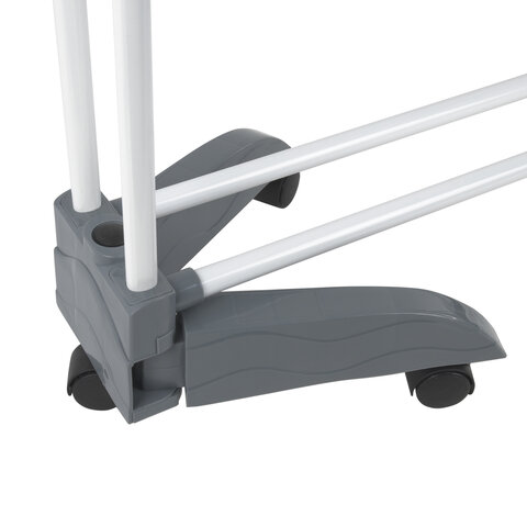 Данная сушилка в отличии от ряда конкурентов отличается складным основанием на колесиках со стопорами для удобного использования и хранения (в собранном виде основания глубина 21,5 см, в разложенном виде – 59,5 см) что существенно экономит пространство, когда вы не используете ее по назначению.