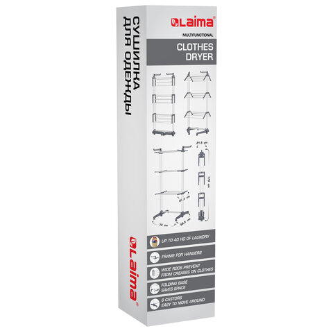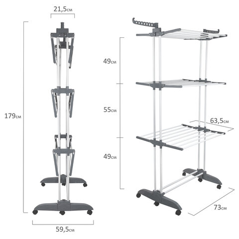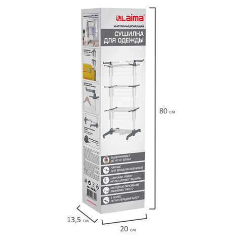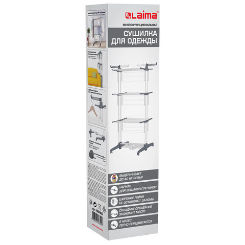 Сушилка напольная для белья раскладная МНОГОФУНКЦИОНАЛЬНАЯ, 3 уровня, на колесах, LAIMA HOME, 607807