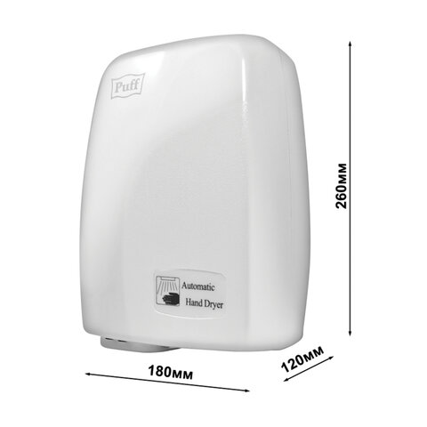 Бесшумная работа сенсора, мощность 1200 Вт, скорость движения воздуха в 16 м/с – все это объединяет в себе сушилка для рук PUFF-120. Она станет незаменимой вещью повседневного пользования и позволит быстро и без вреда для кожи высушить руки. Для более комфортного использования предусмотрено автоматическое отключение и включение, а защита от перегрева гарантирует исправную работу прибора.