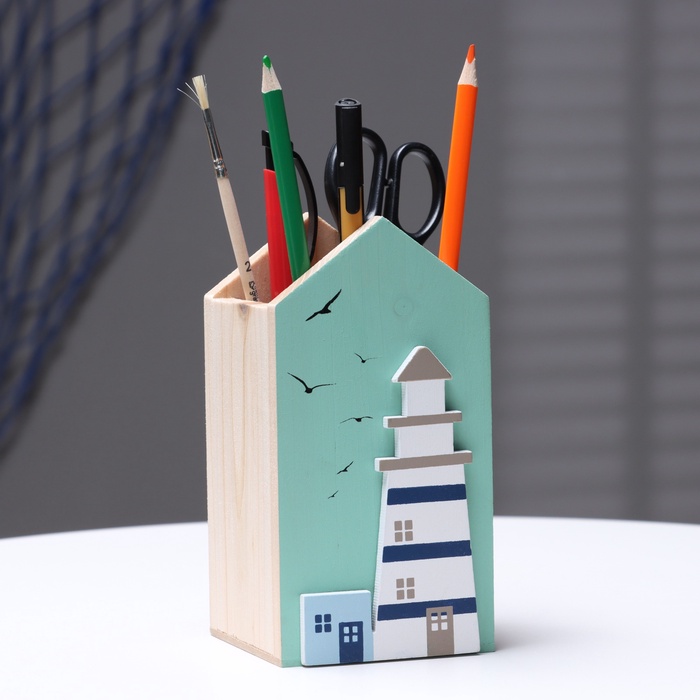 Деревянный органайзер настольный для канцелярии «Цветок», набор 9 деталей, с подставкой под телефон, карандашница, 18×12.5×9 см