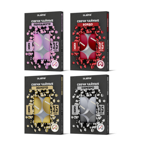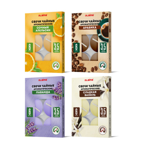Свечи чайные ароматические в гильзе КОМПЛЕКТ 6 штук, до 3,5 часов горения, ассорти 4 аромата, LAIMA, 609977