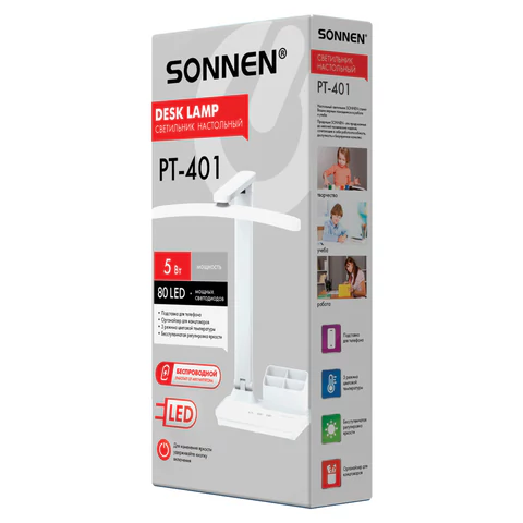 Настольная лампа светильник беспроводная SONNEN PT-301, органайзер, USB, LED, 4 Вт, 3 режима, 238778