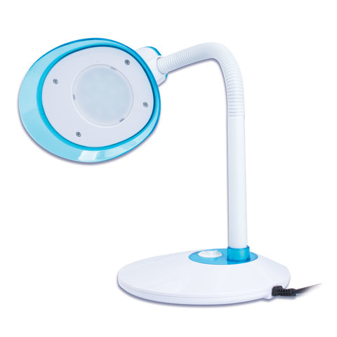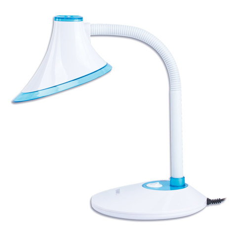 Настольный светильник высотой 40,7 см представлен в классическом белом дизайне с небольшими синими вставками, благодаря которому гармонично впишется в офисный или домашний интерьер. Устройство оснащено легким пластиковым корпусом и яркой LED матрицей на 5 Вт. Вы будете довольны освещением с цветовой температурой от 4700 до 6000 K и световым потоком 370 Лм, которое обеспечивают 12 светодиодов.