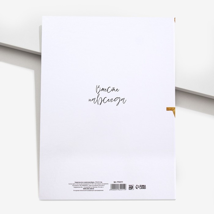 Папка для свидетельства о заключении брака «Вместе навсегда», А5