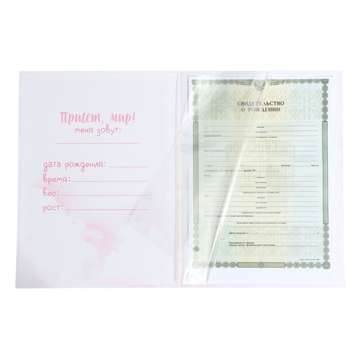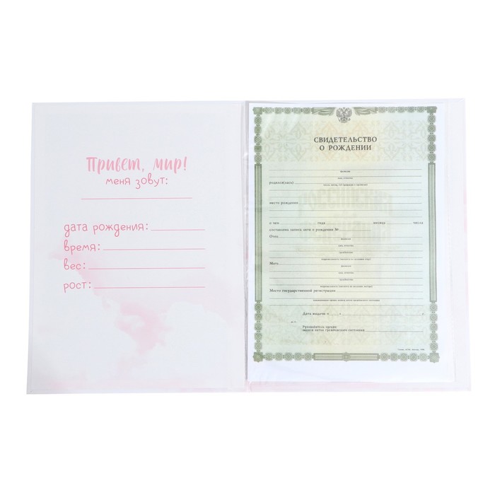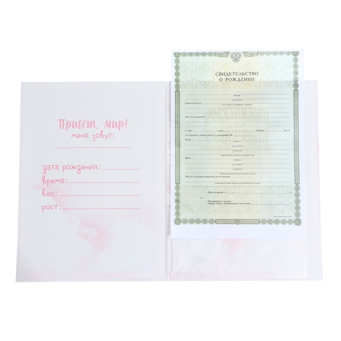 Папка для свидетельства о рождении "Наша малышка", розовая для девочки, 23,1х30,7см