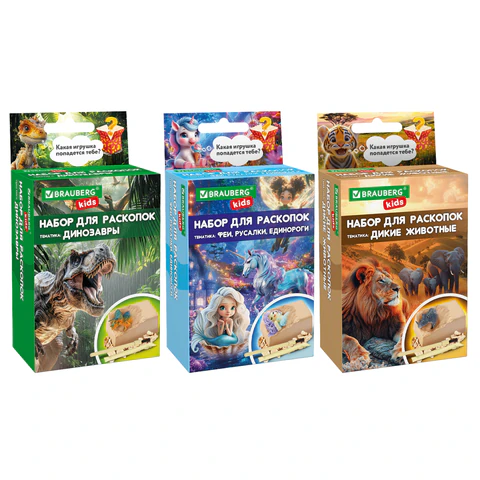 Набор для раскопок 8,5х16 см, карточка, инструменты, 3 вида ассорти, BRAUBERG KIDS, 665916