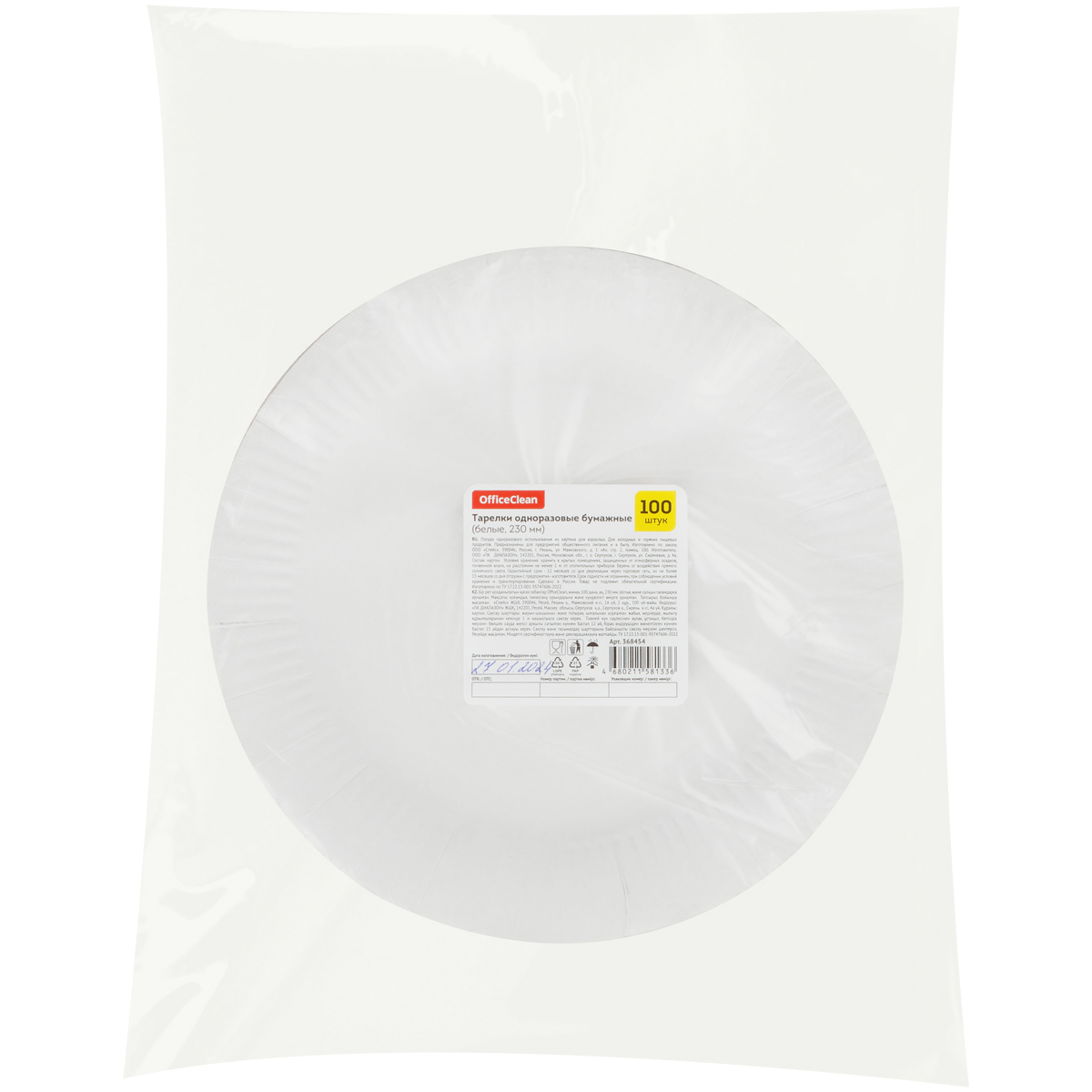 Одноразовые тарелки OfficeClean предназначены для предприятий общественного питания, а также для корпоративных мероприятий любого формата, выездов на природу, пикников. Подходят как для холодных, так и для горячих блюд (до+70 °С). Можно использовать для разогрева еды в микроволновой печи. Изготовлены из российского сырья. Производство расположено в России, что гарантирует постоянный контроль качества и оптимальные цены. Изготовлены из мелованного картона белого цвета. <br/>• Диаметр: 230 мм;<br/>• Материал: картон;<br/>• Плотность: 300 гр/м2.<br/>• Цвет: белый;<br/>• Количество: 100 штук.