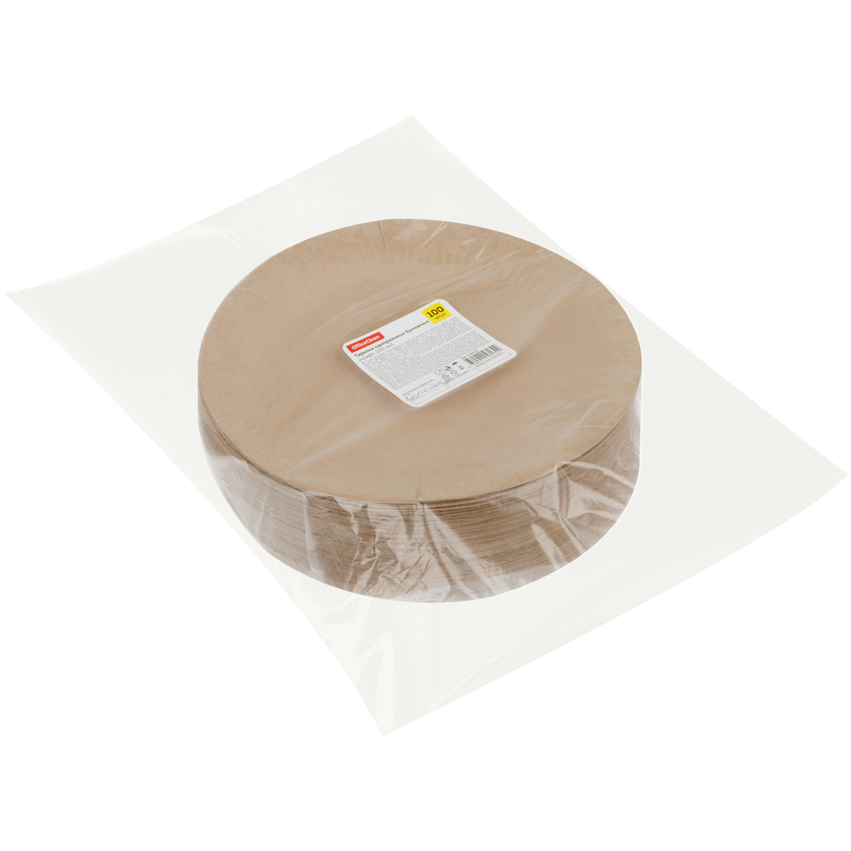 Тарелки одноразовые бумажные OfficeClean, набор 100шт., крафт, 180мм