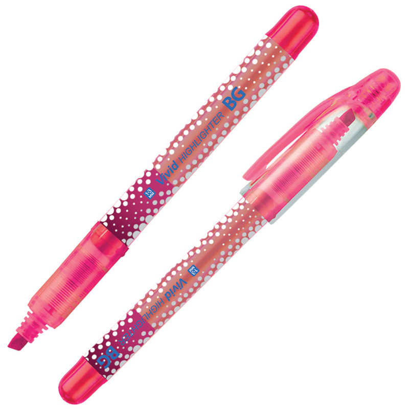Маркер-текстовыделитель BG серии "VIVID" имеет жидкие чернила на водной основе яркого флуоресцентного цвета, скошенный пишущий узел и ширину линии письма от 1 до 3 мм. Цвет корпуса соответствует цвету чернил. Текстмаркер предназначен для различных выделений в тексте, подходит для работы на любых видах бумаги и не просвечивается на оборотной стороне. Текстмаркер BG серии "VIVID" может использоваться при работе с документами, каталогами, брошюрами, списками и удобен при написании рефератов, курсовых работ и оформления конспектов