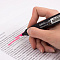 Текстовыделитель розового цвета обладает плоской формой корпуса диаметром 18 мм. Корпус тектовыделителя оснащен удобной зоной захвата. Скошенный наконечник имеет толщину линии письма от 1 до 4 мм, что обеспечивает удобство при работе с текстом, напечатанным мелким шрифтом, или таблицами. Текстовыделитель обладает экономным расходом чернил. Светоустойчивые чернила на водной основе не выцветают даже на открытом солнце и не размазываются в процессе использования. Изделие не перезаправляется. Колпачок с клипом и соответствует цвету чернил.