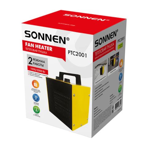 Тепловая пушка SONNEN PTC3001, 3000 Вт, керамический нагревательный элемент, 2 режима, 456206