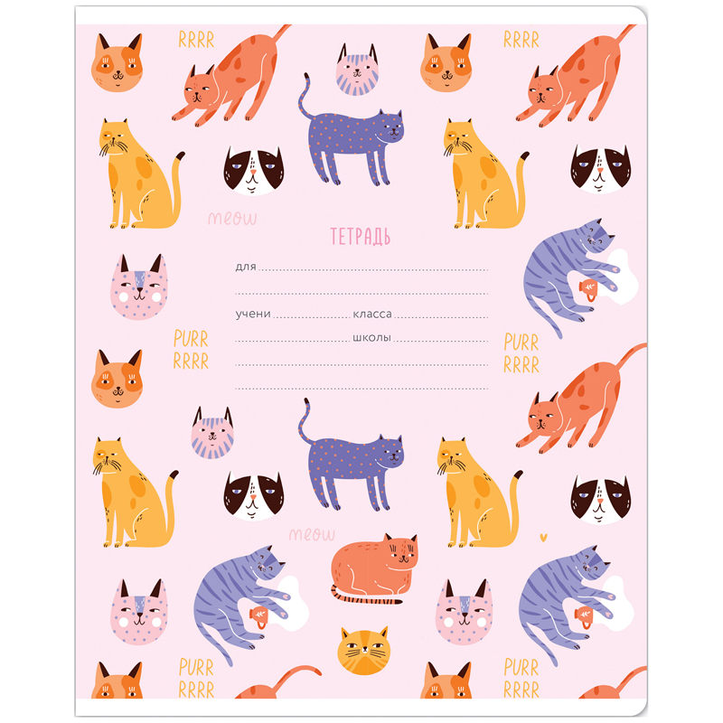 ВНИМАНИЕ: БОЛЬШИНСТВО ЭЛЕМЕНТОВ В НАБОРЕ МОГУТ ИМЕТЬ ОДИНАКОВЫЙ ДИЗАЙН<br/>Тетрадь школьная MESHU Cat band формата А5 на скрепке состоит из 12 листов. Внутренний блок – это офсетная бумага плотностью 65 г/м2, белизна − 100%, линовка – клетка с полями. Обложка тетради изготовлена из плотного чистоцеллюлозного картона с ВД-лаком и имеет скругленные углы. Дизайн обложек понравится всем любителям стильной и яркой канцелярии.<br/>• Кол-во листов: 12;<br/>• Линовка: клетка с полями;<br/>• Белизна: 100%;<br/>• Плотность блока: 60 г/м2;<br/>• Крепление: скрепка;<br/>• Материал обложки: чистоцеллюлозный картон.
