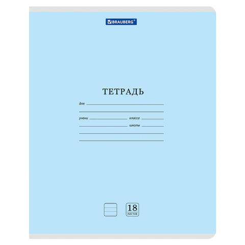 Тетрадь 18л. BRAUBERG КЛАССИКА NEW линия, обложка картон, СИНЯЯ, 107781