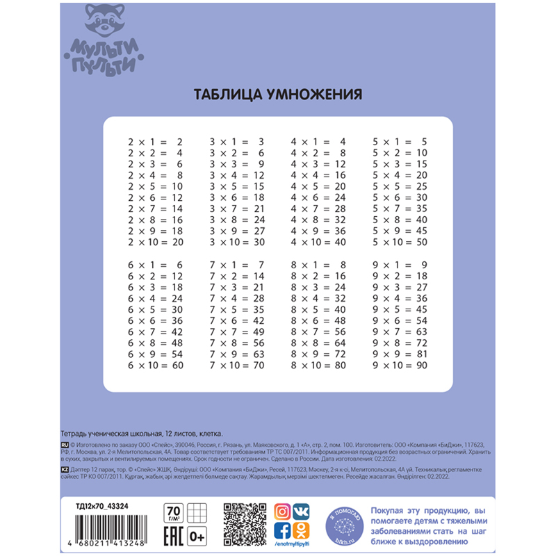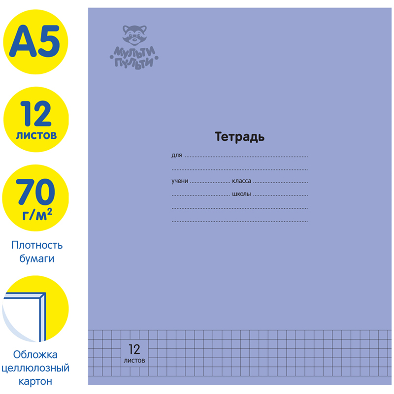 Тетрадь Мульти-Пульти однотонная в клетку. Внутренний блок из качественного офсета повышенной плотности 70г/м2. Благодаря этому листы меньше подвержены просвечиванию и писать в такой тетради более приятно по сравнению со стандартной. Обложка из качественного целлюлозного картона 190г/м2. Объем блока - 12л. Формат А5