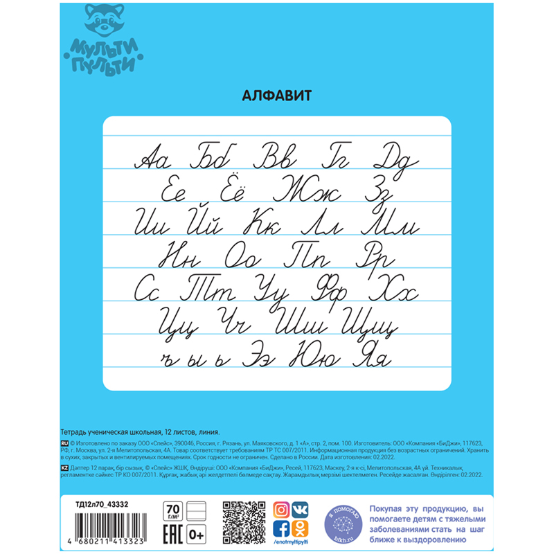 Тетрадь Мульти-Пульти однотонная в линию. Внутренний блок из качественного офсета повышенной плотности 70г/м2. Благодаря этому листы меньше подвержены просвечиванию и писать в такой тетради более приятно по сравнению со стандартной. Обложка из качественного целлюлозного картона 190г/м2. Объем блока - 12л. Формат А5