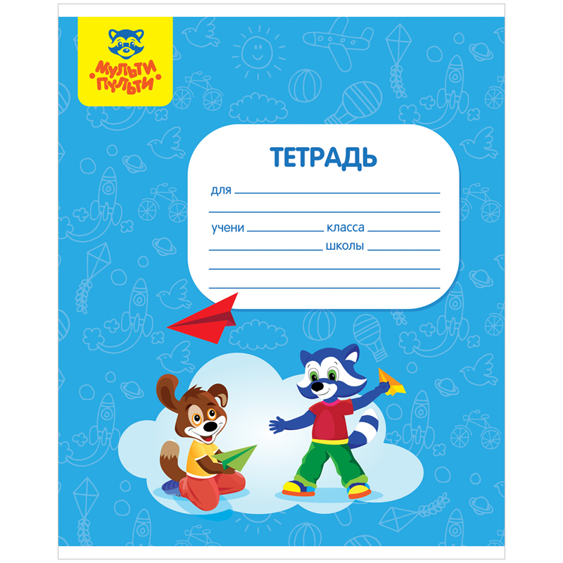 Тетрадь «Мульти-Пульти» из серии «Приключения Енота» для школьников младших классов. На обложке из мелованного картона рисунок с любимым героем бренда – Енотом Мульти-Пульти. Удобный формат А5 (165*205 мм). Внутренний блок тетради состоит из 12 листов офсетной бумаги плотностью 60 г/м². Вид крепления – скрепка. Линовка – линия с полями.