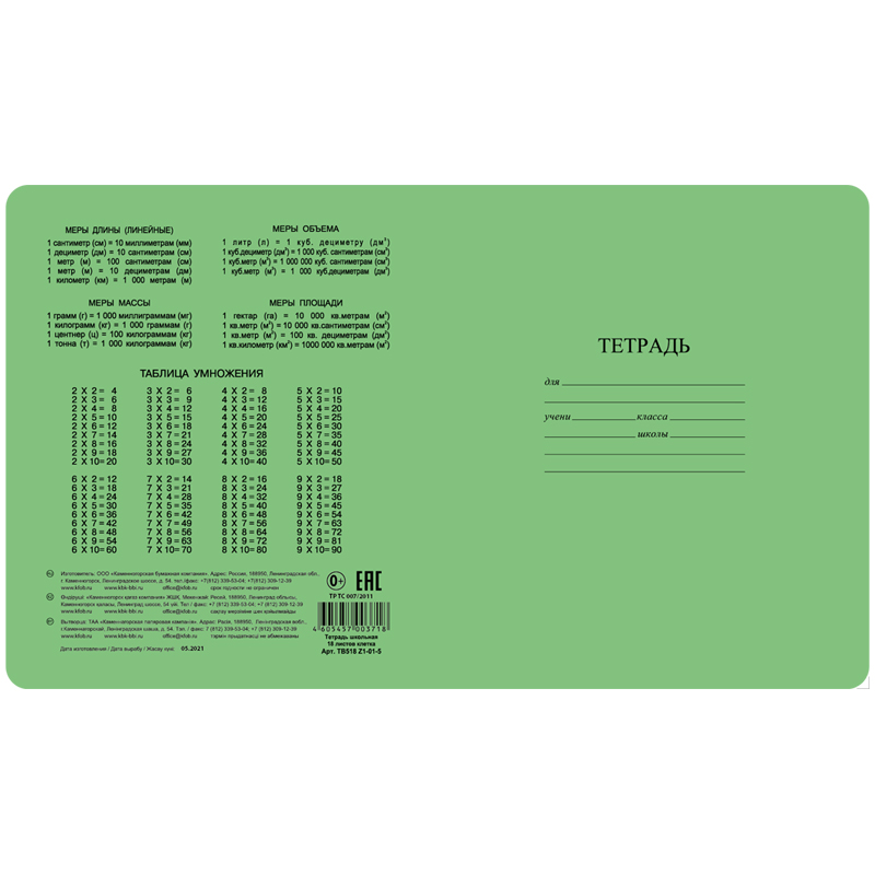 Тетради в клетку подходят для выполнения домашних и контрольных работ. Удобны даже для школьников младшего возраста. Обложка -обложечная бумага. На обратной стороне обложки расположена таблица умножения. Внутренний блок - офсетный 60 г/м2 в клетку. Белизна внутреннего блока -100%. Формат тетради - А5, 18 листов. Уголки обложки и внутреннего блока -закругленные.