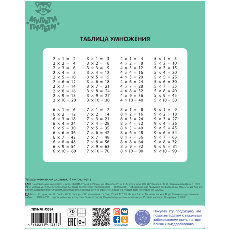 Тетрадь Мульти-Пульти однотонная в клетку. Внутренний блок из качественного офсета повышенной плотности 70г/м2. Благодаря этому листы меньше подвержены просвечиванию и писать в такой тетради более приятно по сравнению со стандартной. Обложка из качественного целлюлозного картона 190г/м2. Объем блока - 18л. Формат А5