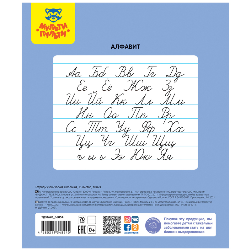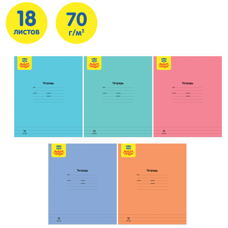 Тетрадь Мульти-Пульти однотонная в линию. Внутреннний блок из качественного офсета повышенной плотности 70г/м2. Благодаря этому листы меньше подвержены просвечиванию и писать в такой тетради более приятно по сравнению со стандартной. Обложка из качественного целлюлозного картона 190г/м2. Оборотная сторона обложки запечатана рисункам и имеет блок для записи ФИО учителя по предмету. Объем блока - 18л. Формат А5