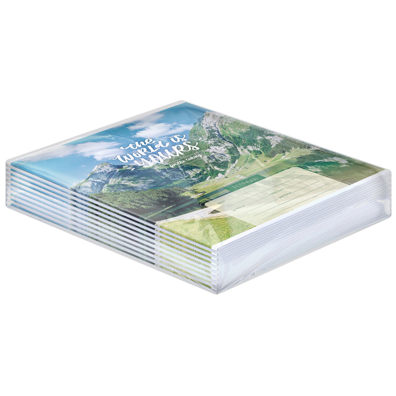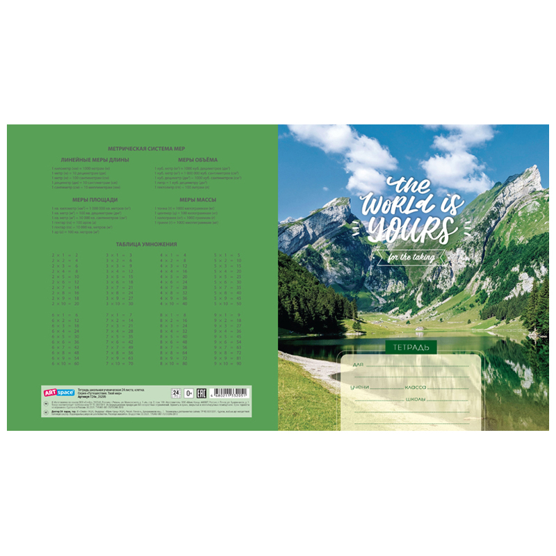 Формат А5. Обложка – мелованный картон, ВД-лак. Внутренний блок – офсет 60 г/м², линовка - клетка с полями. Объем блока – 24л.