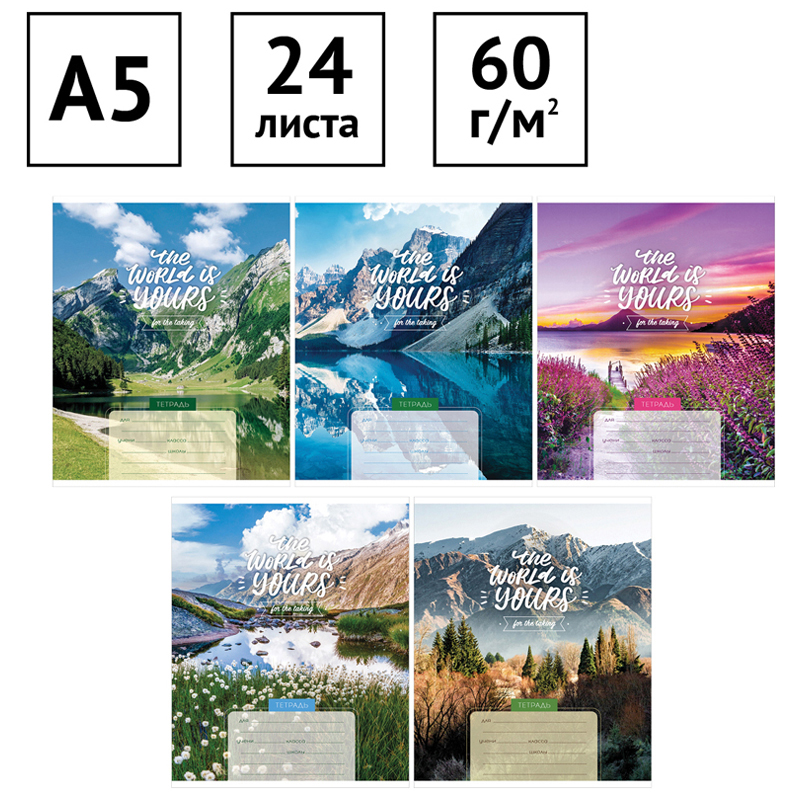 Тетрадь 24л. BRAUBERG КЛАССИКА, линия, обложка картон, АССОРТИ (5 видов), 107786