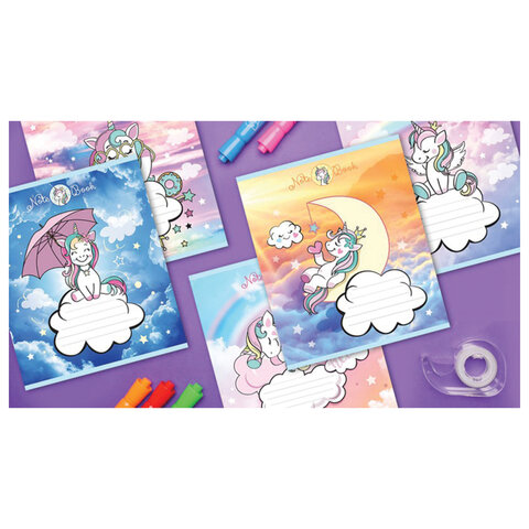 Тетрадь 12 л. ПЗБМ клетка, блестки, "Единорожки" (5 видов), 019418