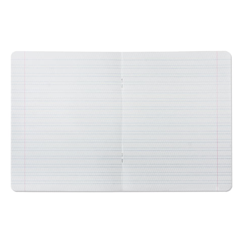 Внутренний блок плотностью 65 г/м2 из офсетной бумаги содержит 12 листов. Линовка - частая косая линия с полями. Обложка изготовлена из импортного мелованного картона. Скрепка надежно скрепляет листы между собой.