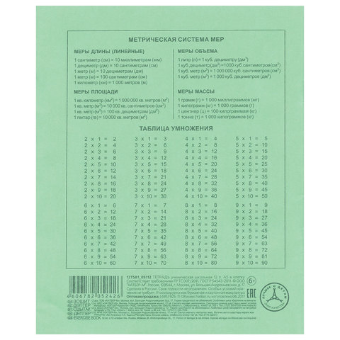 Внутренний блок из офсетной бумаги плотностью 60 г/м2 содержит 18 листов в клетку с полями. Обложка изготовлена из офсета плотностью 80 г/м2. Скрепка надежно скрепляет листы между собой.