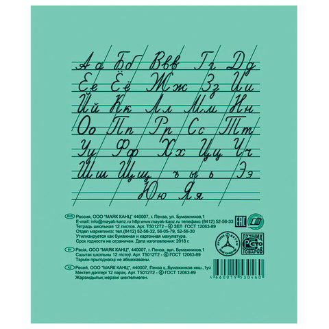 Тетрадь "Маяк" с зеленой обложкой изготовлена в соответствии с ГОСТ 12063-89. Предназначена для дошкольников и учащихся начальных и средних классов.