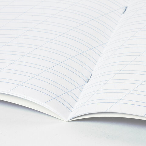 Внутренний блок 12 листов плотностью 60 г/м2 из офсетной бумаги имеет линовку в косую линию с полями. Внутренний блок 92-100% белизны. Скрепка надежно скрепляет листы между собой.