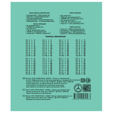 Тетрадь "Маяк" с зеленой обложкой изготовлена в соответствии с ГОСТ 12063-89. Предназначена для дошкольников и учащихся начальных и средних классов.