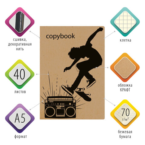 Практичная тетрадь BRAUBERG "СКЕЙТЕР" для учебы и работы. Обложка тетради изготовлена из крафт-картона со стильным, молодежным дизайном.