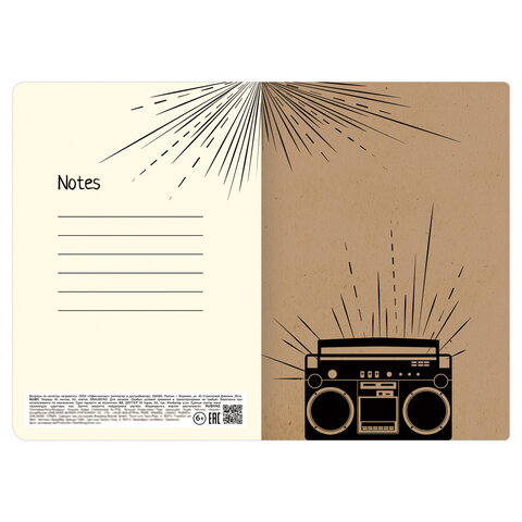 Общая тетрадь формата А5 содержит 40 листов с линовкой в клетку. Сшивка плотно соединяет листы. Обложка изготовлена из высококачественного импортного крафт-картона с двусторонней запечаткой, что придает тетради изысканный и неповторимый стиль. Внутренний блок - тонированная офсетная бумага цвета слоновой кости плотностью 70 г/м2.