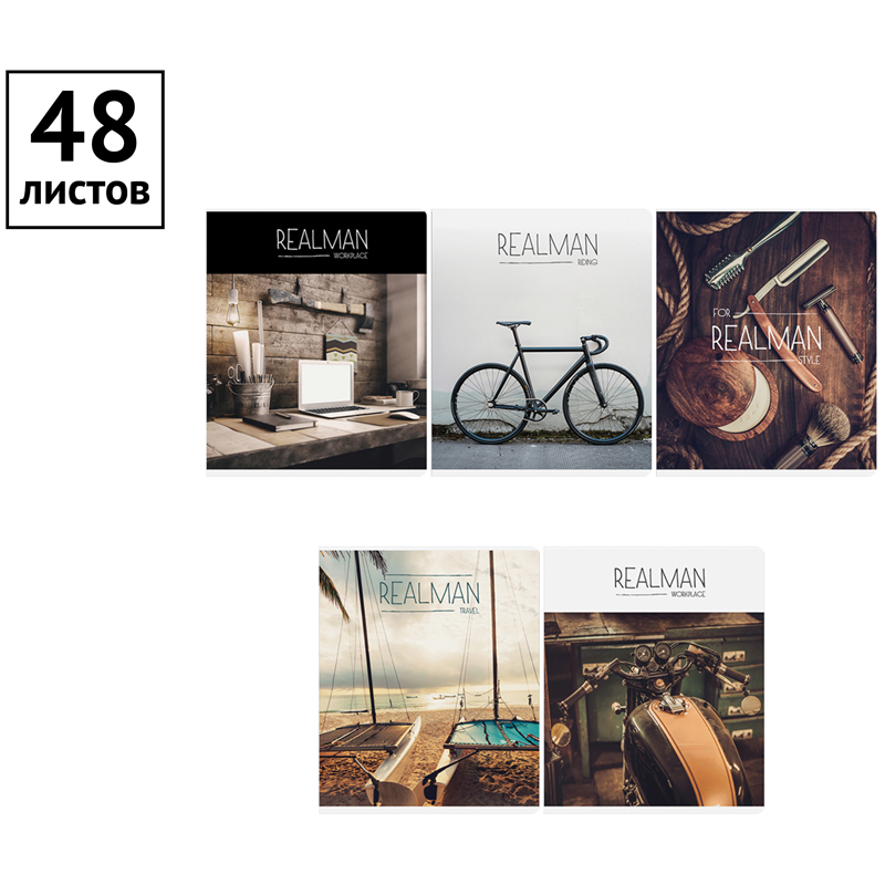 ВНИМАНИЕ: БОЛЬШИНСТВО ЭЛЕМЕНТОВ В НАБОРЕ МОГУТ ИМЕТЬ ОДИНАКОВЫЙ ДИЗАЙН.<br/>Общая тетрадь формата А5 (165*205мм) на скрепке состоит из 48 листов. Внутренний блок – это офсетная бумага плотностью 60-65 г/м², белизна 100%, линовка – клетка с полями. Обложки подобраны для настоящих мужчин: четкие линии, темная цветовая гамма. Оформление оценят любители путешествий. Обложка тетради ArtSpace изготовлена из импортного целлюлозного мелованного картона. <br/>• Количество листов: 48;<br/>• Формат тетради: А5 (165*205мм);<br/>• Линовка: клетка с полями;<br/>• Белизна: 100%;<br/>• Крепление: скрепка;<br/>• Материал обложки: мелованный картон.