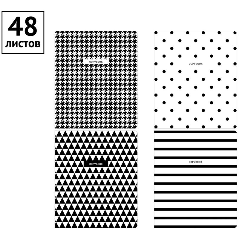 ВНИМАНИЕ: БОЛЬШИНСТВО ЭЛЕМЕНТОВ В НАБОРЕ МОГУТ ИМЕТЬ ОДИНАКОВЫЙ ДИЗАЙН.<br/>Общая тетрадь формата А5 (165*205мм) на скрепке состоит из 48 листов. Внутренний блок – это офсетная бумага плотностью 60-65 г/м², белизна 100%, линовка – клетка с полями. Черно-белые обложки с контрастным рисунком всегда привлекут внимание. Обложка тетради ArtSpace изготовлена из импортного целлюлозного мелованного картона. <br/>• Количество листов: 48;<br/>• Формат тетради: А5 (165*205мм);<br/>• Линовка: клетка с полями;<br/>• Белизна: 100%;<br/>• Крепление: скрепка;<br/>• Материал обложки: мелованный картон.
