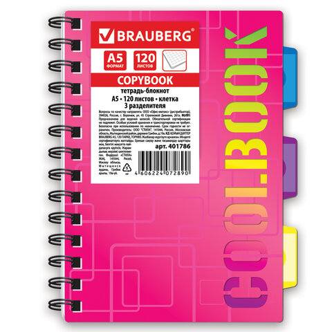 Тетрадь-блокнот BRAUBERG серии "CoolBOOK" предназначена для ведения записей среди старшеклассников, студентов и офисных сотрудников. Выполнена в ярком и неординарном дизайне.