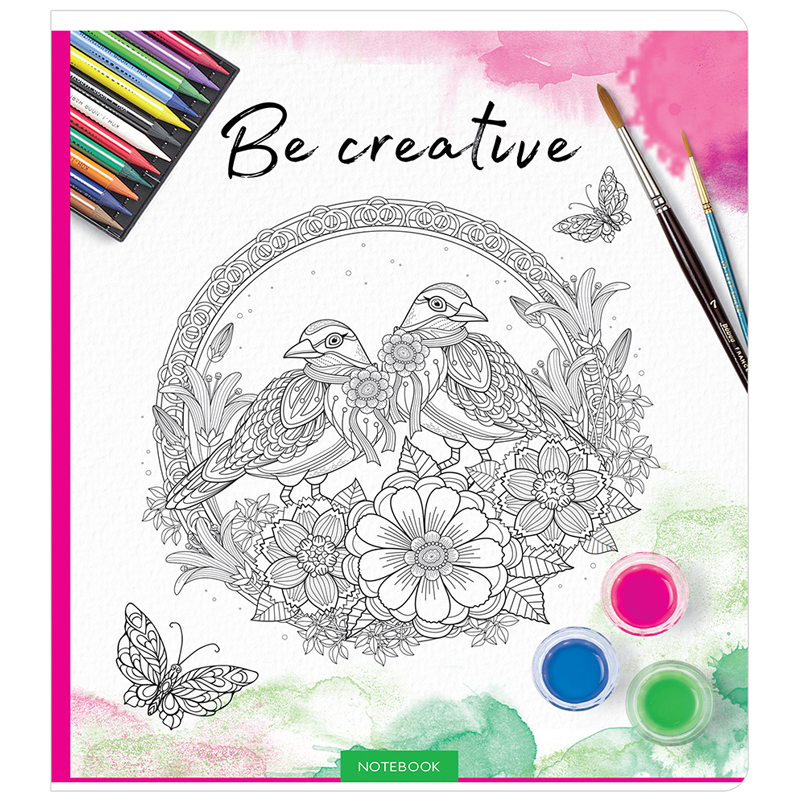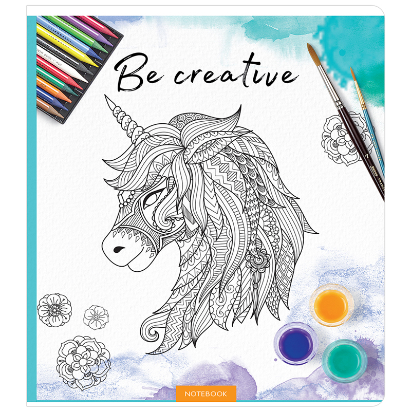 Общая тетрадь формата А5 (165*205 мм) на скрепке состоит из 96 листов. Внутренний блок – это офсетная бумага плотностью 60 г/м², белизна 100%, линовка – клетка с полями. Яркие обложки-антистресс так и хочется раскрасить. Обложка тетради ArtSpace изготовлена из мелованного картона.