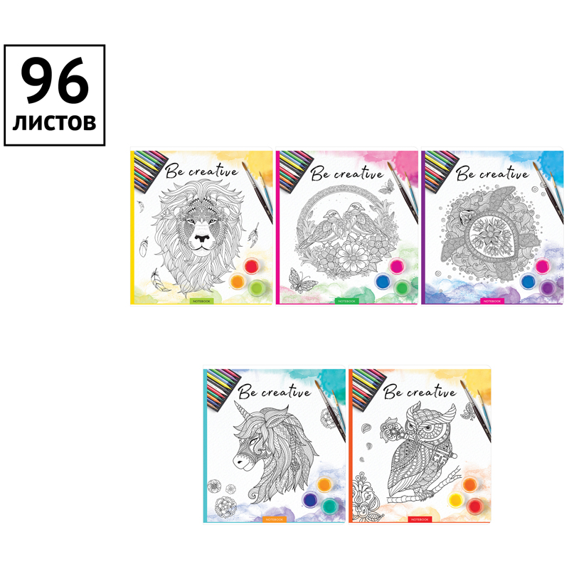 ВНИМАНИЕ: БОЛЬШИНСТВО ЭЛЕМЕНТОВ В НАБОРЕ МОГУТ ИМЕТЬ ОДИНАКОВЫЙ ДИЗАЙН.<br/>Общая тетрадь формата А5 (165*205 мм) на скрепке состоит из 96 листов. Внутренний блок – это офсетная бумага плотностью 60 г/м², белизна 100%, линовка – клетка с полями. Яркие обложки-антистресс так и хочется раскрасить. Обложка тетради ArtSpace изготовлена из мелованного картона. <br/>• Количество листов: 96;<br/>• Формат тетради: А5 (165*205 мм);<br/>• Линовка: клетка с полями;<br/>• Белизна: 100%;<br/>• Крепление: скрепка;<br/>• Материал обложки: мелованный картон.