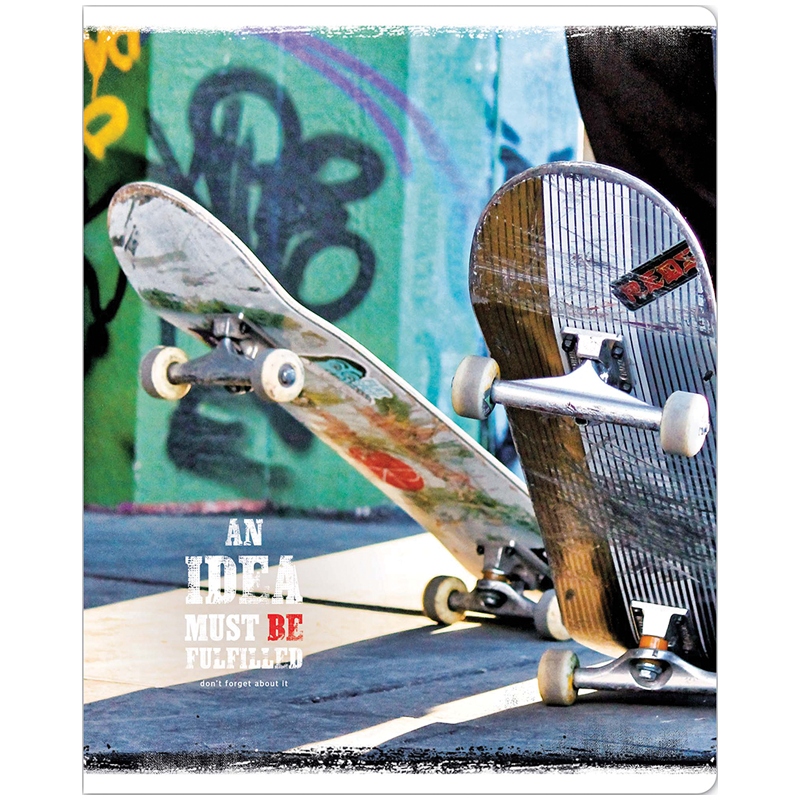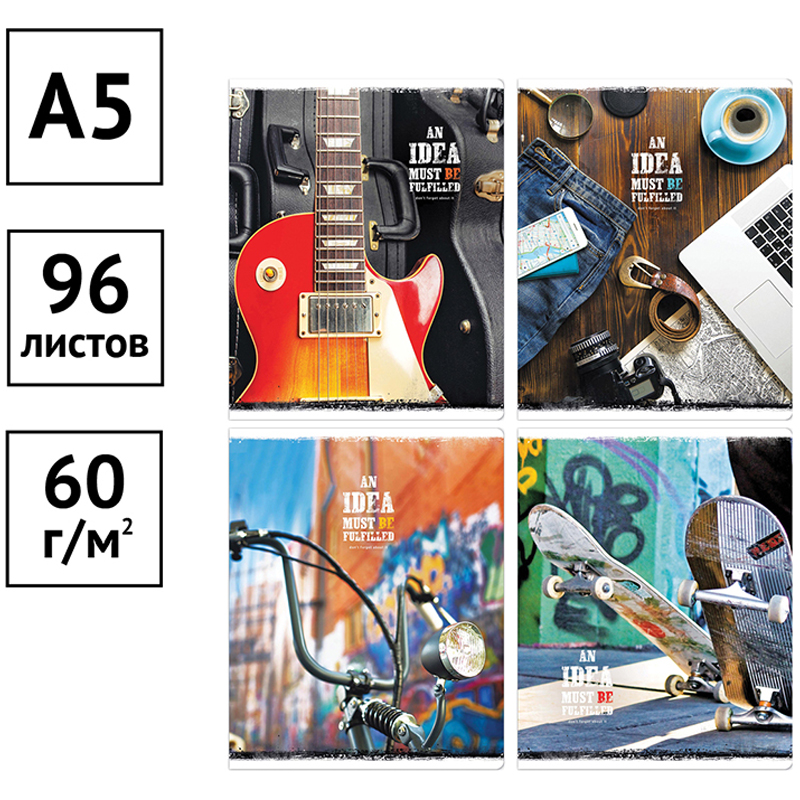 Тетрадь общая формата А5 (165*205 мм) на скобе, 96 листов. Внутренний блок из офсетной бумаги 60-65 г/м², белизной 100% в клетку. Обложка изготовлена из импортного целлюлозного мелованного картона.