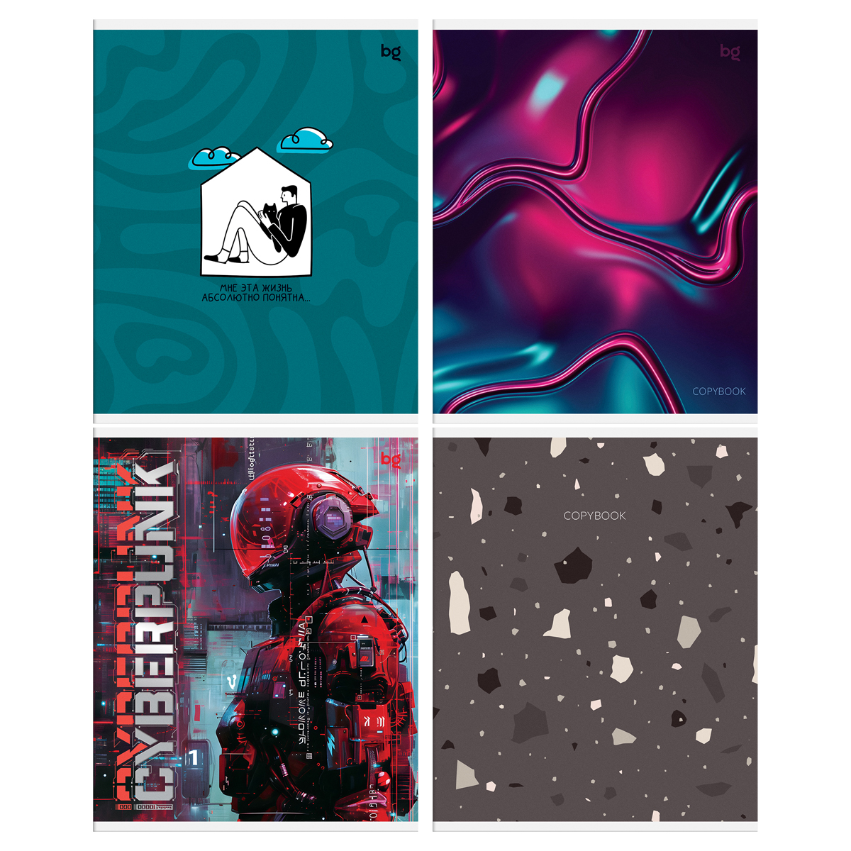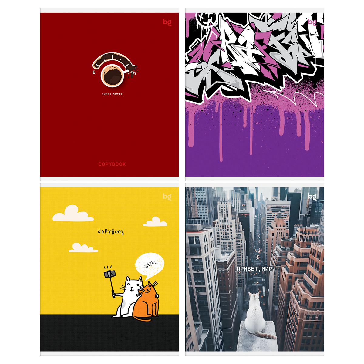 Тетрадь BG серии «Mix» в клетку. Формат А5. Вид крепления – скоба. Внутренний блок – это 96 листов, офсетная бумага плотностью 60 г/м². Обложка выполнена из мелованного картона. Тетради с креативным дизайном отлично подходят для выполнения домашних и классных работ.