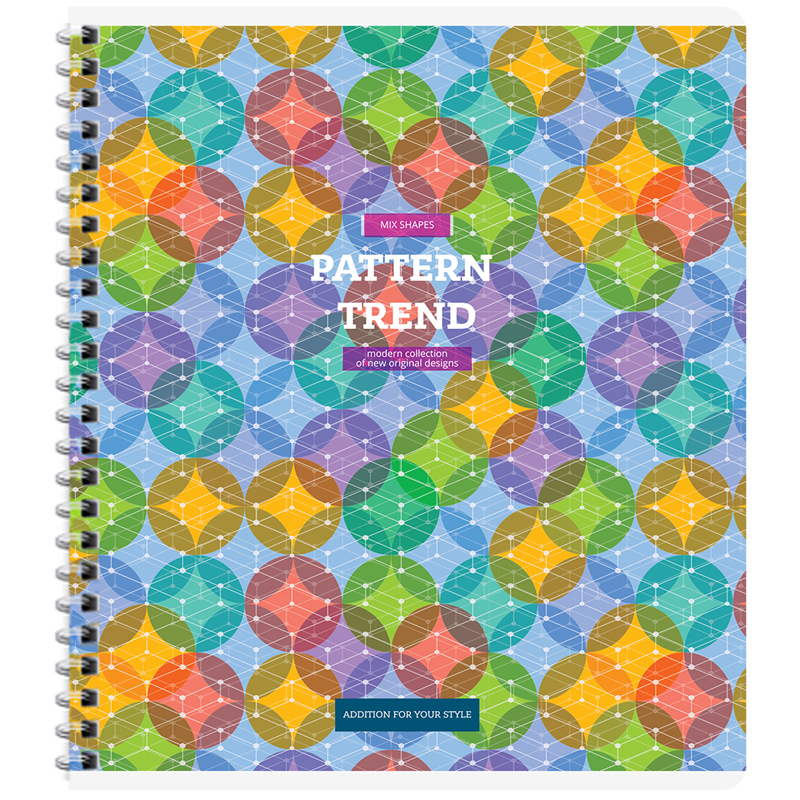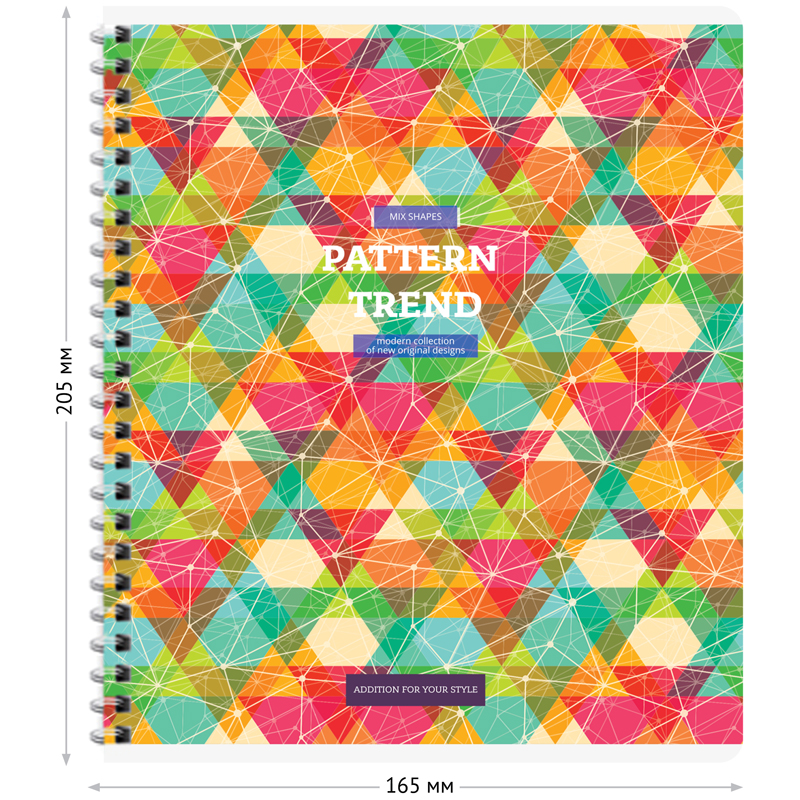ВНИМАНИЕ: БОЛЬШИНСТВО ЭЛЕМЕНТОВ В НАБОРЕ МОГУТ ИМЕТЬ ОДИНАКОВЫЙ ДИЗАЙН.<br/>Тетрадь общая ArtSpace «Узоры. Pattern trend» формата А5 (165*205) на гребне состоит из 96 листов. Внутренний блок - это офсетная бумага плотностью 60-65 г/м², белизна - 100%, линовка – клетка без полей. Обложка тетради изготовлена из импортного чистоцеллюлозного мелованного картона. Обложки общих тетрадей ArtSpace «Узоры. Pattern trend» - это интересные варианты разноцветных геометрических узоров. Тетрадь соответствует требованиям Технического регламента Таможенного союза «О безопасности продукции, предназначенной для детей и подростков».<br/>• Количество листов: 96;<br/>• Линовка: клетка без полей;<br/>• Формат тетради: А5(165*205);<br/>• Белизна: 100%;<br/>• Крепление: гребень/спираль;<br/>• Материал обложки: мелованный картон