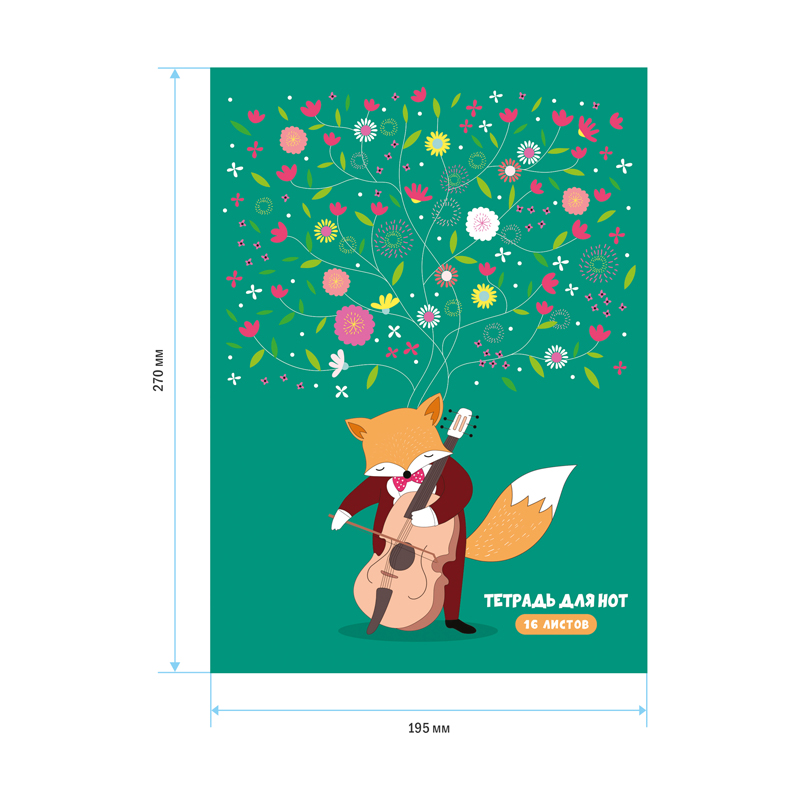 Тетрадь для нот ArtSpace «Вдохновение» формата А4 (195*270 мм) на скрепке отлично подойдёт для записи нот любимых произведений. Тетрадь имеет вертикальную ориентацию. Внутренний блок состоит из 16 листов офсетной бумаги плотностью 65 г/м2 и 100% белизной. Обложка тетради выполнена из качественного целлюлозного мелованного картона. Стильные и забавные, яркие и сдержанные обложки тетрадей для нот ArtSpace с различными рисунками в музыкальной тематике понравятся и мальчикам, и девочкам.
